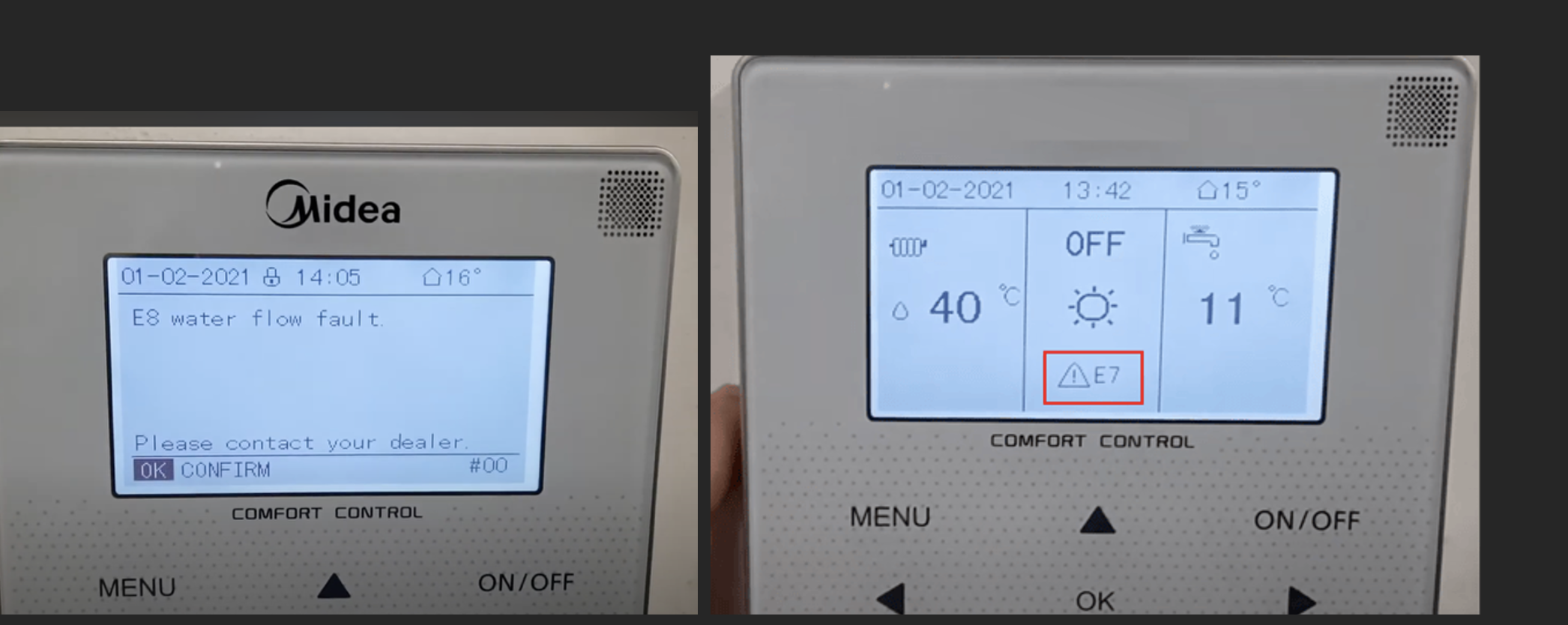 - Triggered when the system does not detect water flow after the circulation pump activates.