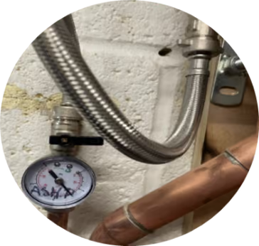 - Locate the filling loop – usually next to your hot water cylinder. It consists of a braided pipe with a black-handled valve on each end.