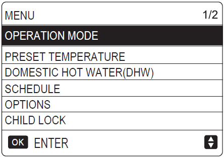 2.Select the Menu button on the Midea Controller