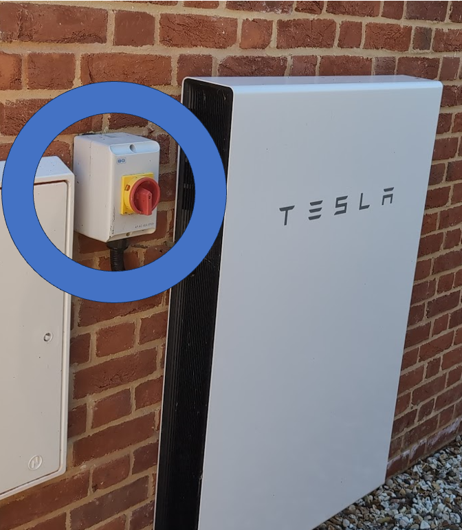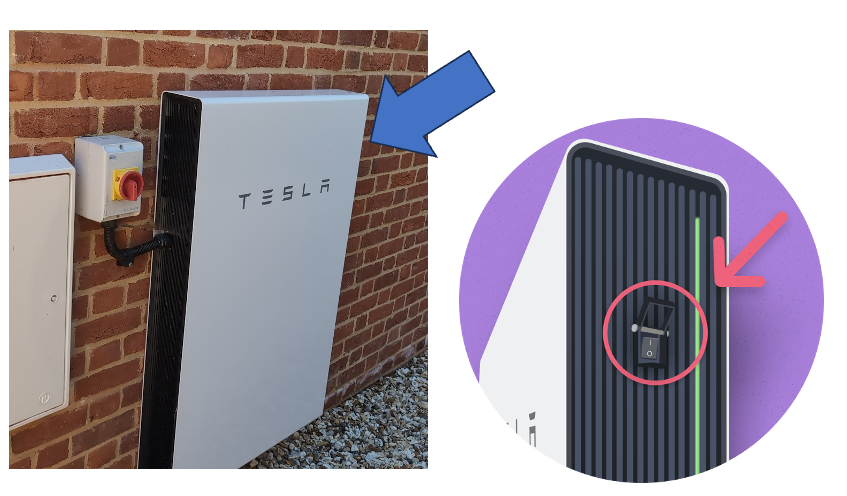 - Ensure the red rotary isolator next to the Powerwall is in the ON position.
